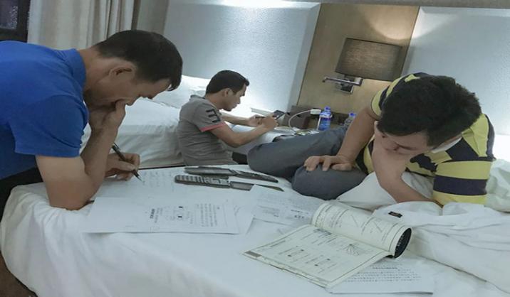 9月18日晚,吳尚欣、吳聲良、張俊三位參賽代表在酒店自主學習16G101《混凝土結構施工圖平面整體表示方法制圖規(guī)則和構造詳圖》新版規(guī)范,并主動計算鋼筋下料,毫不懈怠地為比賽做準備。