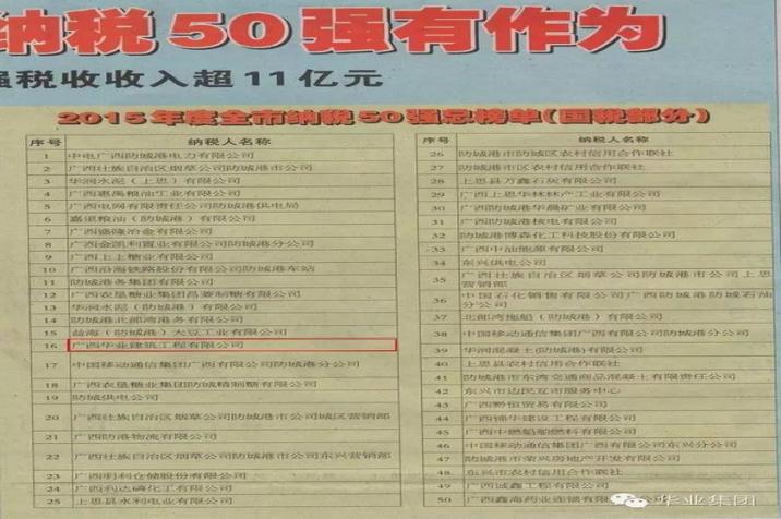 熱烈慶祝廣西華業(yè)建筑工程有限公司躋身防城港市納稅50強(qiáng)!